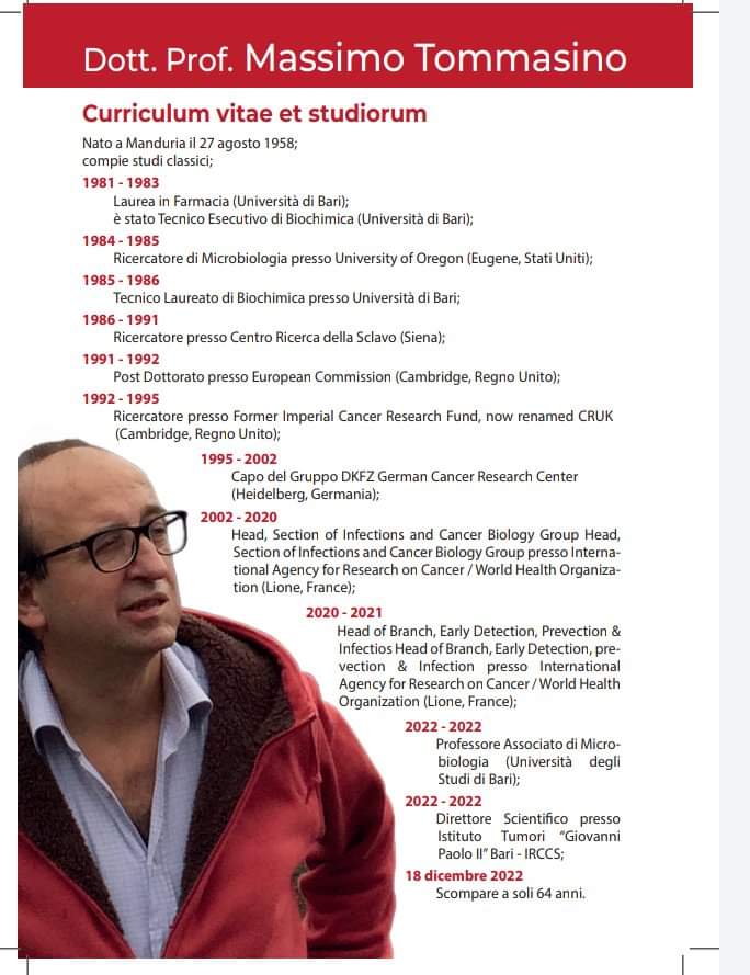 Relazioneranno l’ing. Carlo Tommasino, il dott. Raffaele De Luca, chirurgo oncologo dell’IRCCS dell’istituto tumori “Giovanni Paolo II” di Bari e responsabile dell’ambulatorio Tumori Ereditari e Neoplasie Cistiche del Pancreas, e il dott. Rocco Lomonaco, direttore dell’UOC di Chirurgia Generale “Marianna Giannuzzi” di Manduria, già dirigente medico chirurgo dell’IRCCS dell’istituto tumori “Giovanni Paolo II” di Bari.