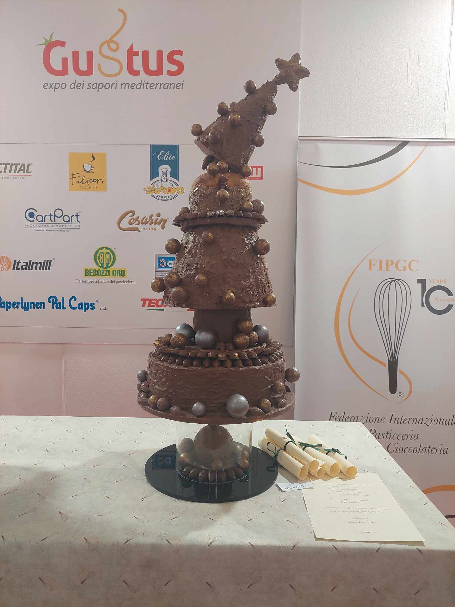 Per la categoria “Panettone Decorato”, ha presentato un panettone con una struttura in cioccolato di ben 21 kg