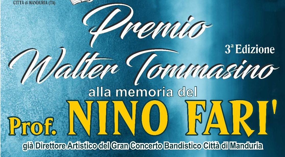 Sarà conferito alla memoria di Nino Farì, che fu direttore artistico del Gran Concerto Bandistico Città di Manduria, la terza edizione del Premio Walter Tommasino, anche quest’anno dedicata a una personalità che ha dato lustro a Manduria.