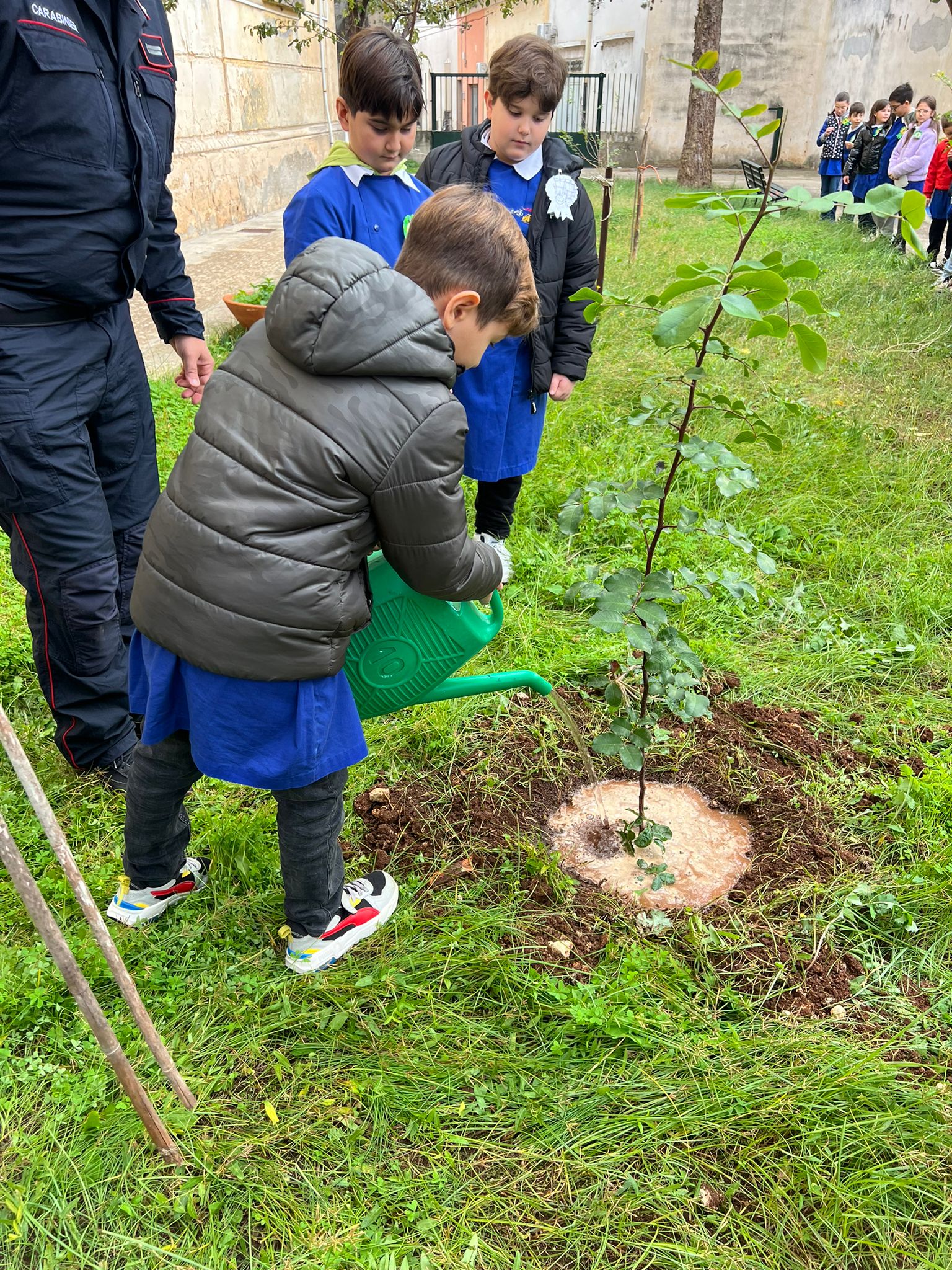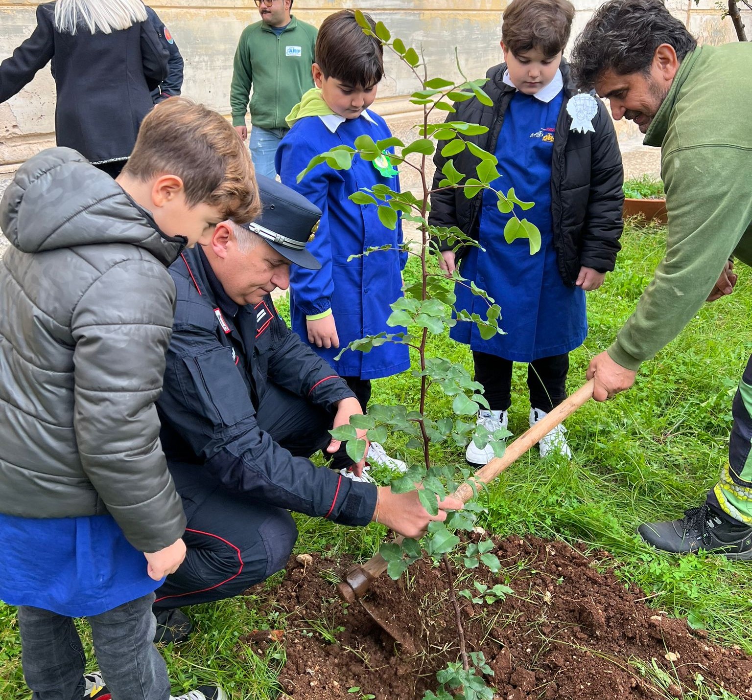 Per la stessa occasione, ieri, nel giardino dell’istituto comprensivo “F. Prudenzano”, alla presenza della preside Anna Laguardia, del Comandante del Nucleo Forestale Vincenzo Solazzo e di altri collaboratori, gli alunni delle classi 4ª A, B e C, accompagnati dalle maestre Marinella Russo, Giusy Masilla, Giusy Buccolieri, Silvia Casella, Chiara Copertino e Daniela Pizzi, hanno partecipato alla piantumazione di 2 alberi di carrubo. Iniziative coinvolgenti per far riflettere i bambini sull’importanza degli alberi per la vita dell’uomo e del nostro Pianeta. Gli alunni si sono impegnati, durante la settimana precedente, nella lettura del testo a più voci “L’albero generoso”, nella memorizzazione del testo poetico “Amici alberi”, nella lettura di riflessioni sul valore degli alberi per la vita di tutti gli esseri viventi e dell’intero Pianeta e di comportamenti errati da evitare per la loro salvaguardia scaturite durante le conversazioni guidate.