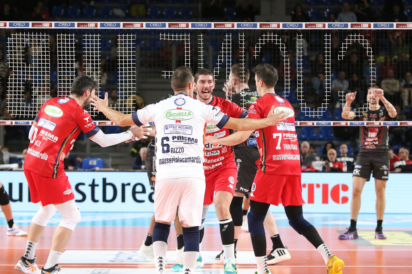 Cucine Lube Civitanova – Gioiella Prisma Taranto 3-2 (25-22, 22-25, 21-25, 25-22, 18-16) – Cucine Lube Civitanova: De Cecco 3, Zaytsev 6, Chinenyeze 10, Lagumdzija 25, Nikolov 19, Anzani 1, Motzo 1, Bisotto (L), Balaso (L), Diamantini 3, Bottolo 7, Larizza 0, Yant Herrera 0. N.E. Thelle. All. Blengini.