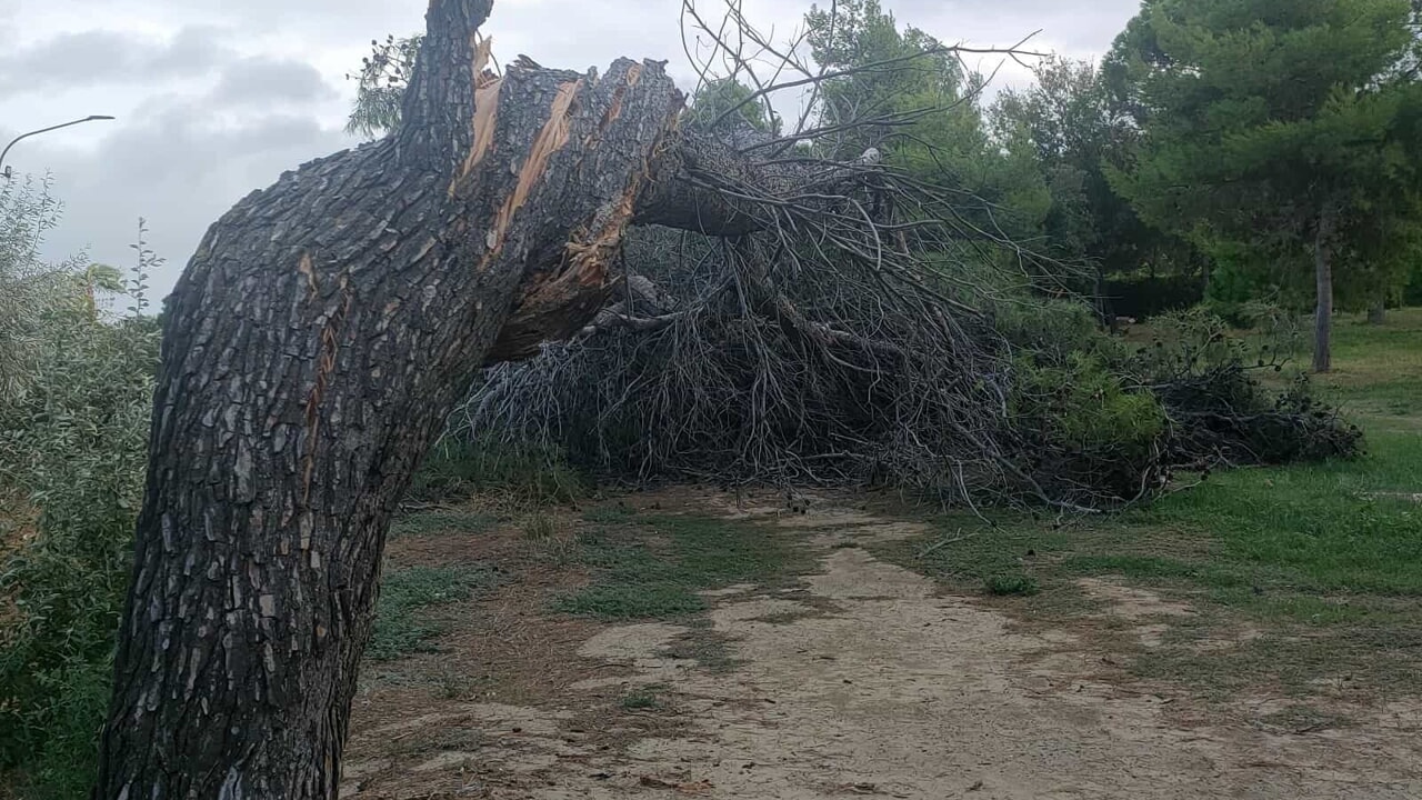 Rami degli alberi spezzati e danni alle produzioni in campagna a causa del forte vento che ha fatto cadere a terra le olive