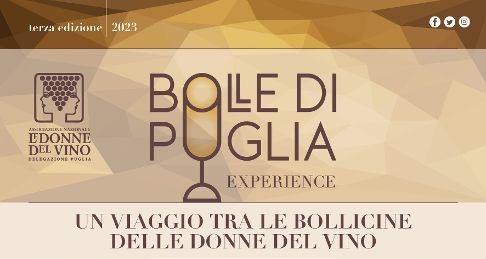 Bolle di Puglia Experience è il format pensato e realizzato dalle Donne del Vino di Puglia per promuovere e valorizzare la conoscenza della produzione spumantistica regionale, un comparto che negli ultimi anni ha fatto passi da gigante in termini di qualità e registra una costante impennata nei consumi. Dal 9 dicembre fino al 19 gennaio, da Nord al Sud della Puglia, inizia un viaggio alla scoperta di produzioni provenienti da vitigni autoctoni e non, allevati in territori caratterizzati da profonde differenze climatiche ed ampelografiche che, attraverso la spumantistica, forniscono un profilo invitante e variegato di possibilità di vinificazione con bollicine a base di Negroamaro, Susumaniello, Primitivo, Nero di Troia, Bombino nero e bianco, Fiano, Verdeca, Bianco d’Alessano e altre uve da vitigni rari.