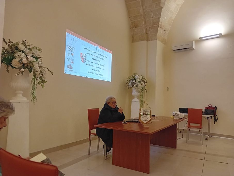 La relatrice ha introdotto l’argomento parlando di Maria d’Enghien che fece costruire la Basilica degli Orsini, oggi Basilica di Santa Caterina di Alessandria.Maria d’Enghien è stata una sovrana italiana. Fu contessa di Lecce e si sposò in prime nozze con Raimondo Orsini del Balzo e in seconde nozze con il re Ladislao d'Angiò-Durazzo, divenendo la sua terza ed ultima moglie. Le sue spoglie riposano nelle Chiesa di Santa Croce a Lecce.