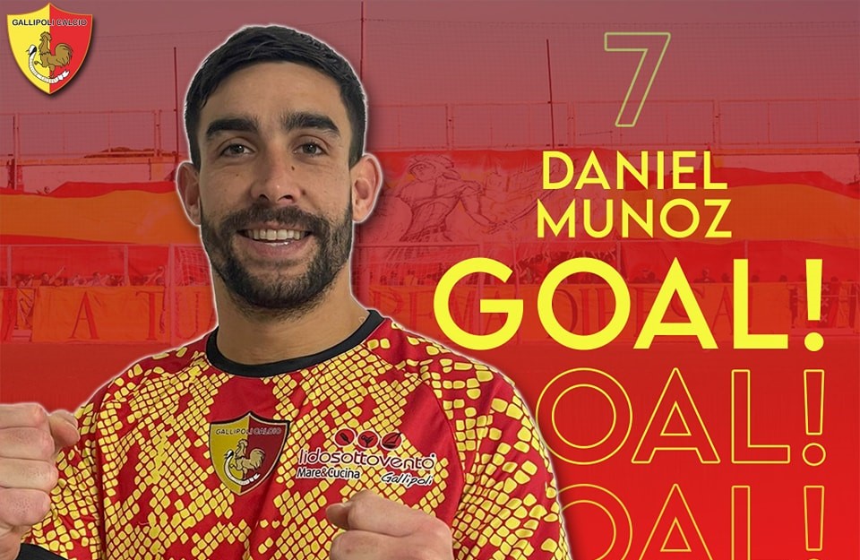 Doppietta di Daniel Munoz in serie D con il Città di Gallipoli. L’ex attaccante del Manduria ha realizzato le due reti, ieri, ad Angri: esattamente al 5’ e al 44’ della ripresa. Per la cronaca, il Città di Gallipoli si è imposto con il risultato di 3-2.