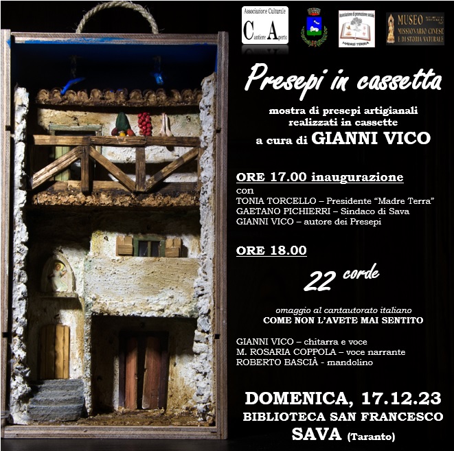Il giorno dell’inaugurazione, a fare da cornice ai presepi in cassetta, un concerto omaggio al cantautorato italiano, che ha visto alla voce e chitarra lo stesso Vico e al mandolino Roberto Bascià.