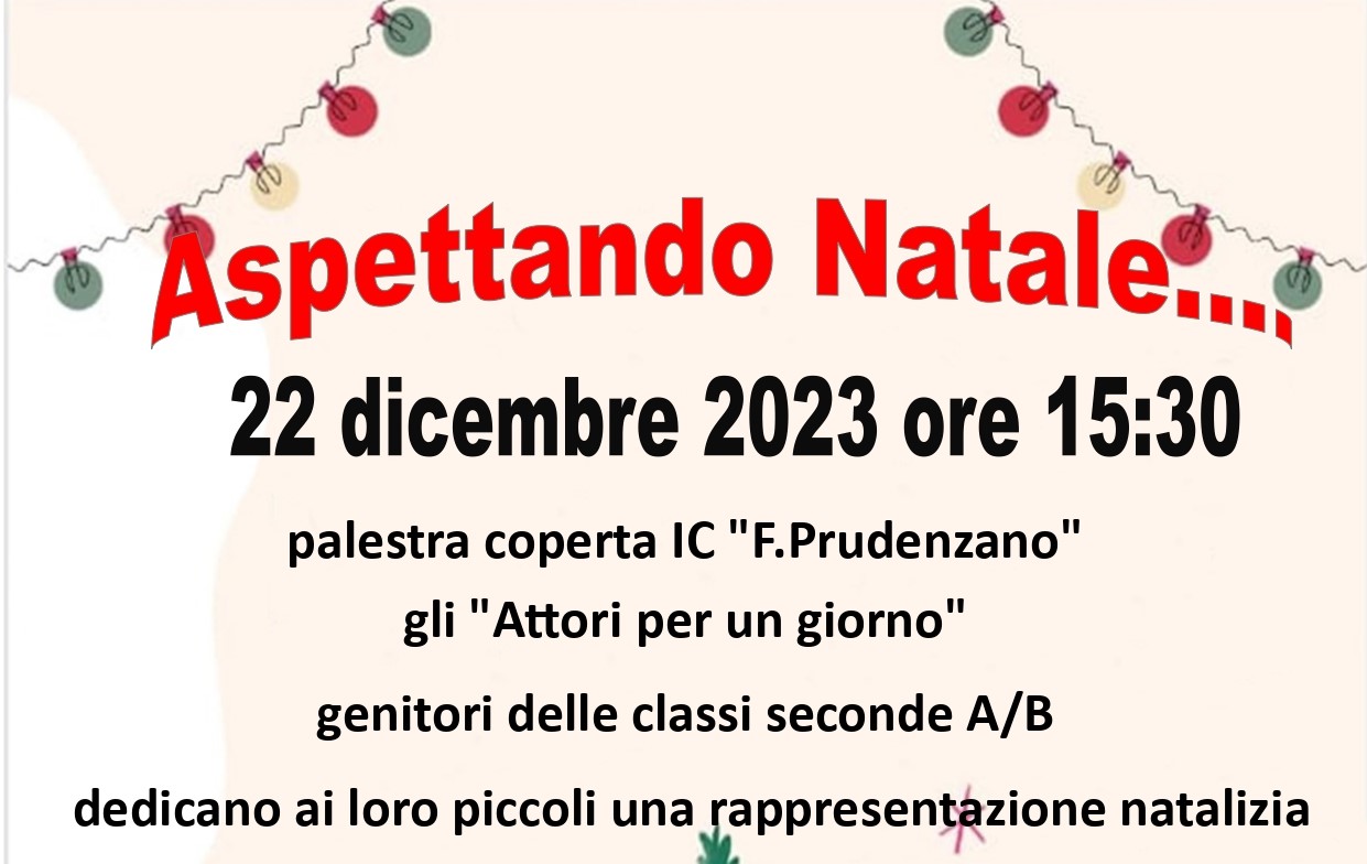 Le rappresentazioni natalizie dell’istituto comprensivo “Prudenzano” si chiudono oggi in bellezza, nel pomeriggio (ore 15,30, presso la palestra coperta del plesso centrale), con lo spettacolo "Il miracolo del Natale”, un modo diverso per salutare le festività natalizie. Questa volta infatti saranno i genitori delle classi seconde A e B della scuola primaria a salire sul palcoscenico e non i loro figli rappresentando e dedicando loro una piccola storia tra amara realtà e dolce fantasia.