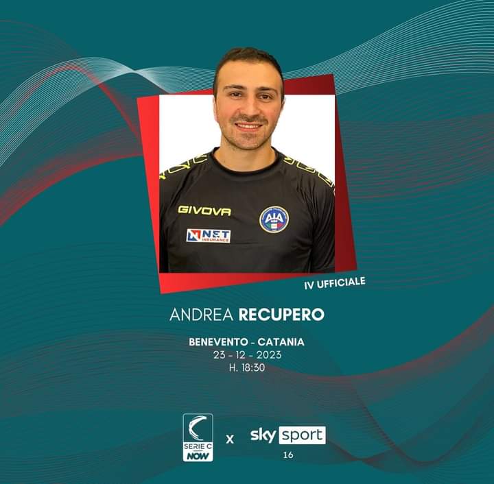 Andrea Recupero (AIA Lecce) designato come quarto ufficiale della partita odierna fra Benevento e Catania, inserita nel programma della 19ª giornata del girone C della serie C, con calcio d’inizio alle 18,30.