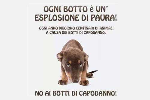 Come ogni anno, oltre alla richiesta di non utilizzare i botti, si chiede a tutti i cittadini di mettere al sicuro gli animali nella notte di Capodanno. Ogni anno, oltre agli animali morti di spavento, si registrano numerosi animali fuggiti e smarriti.