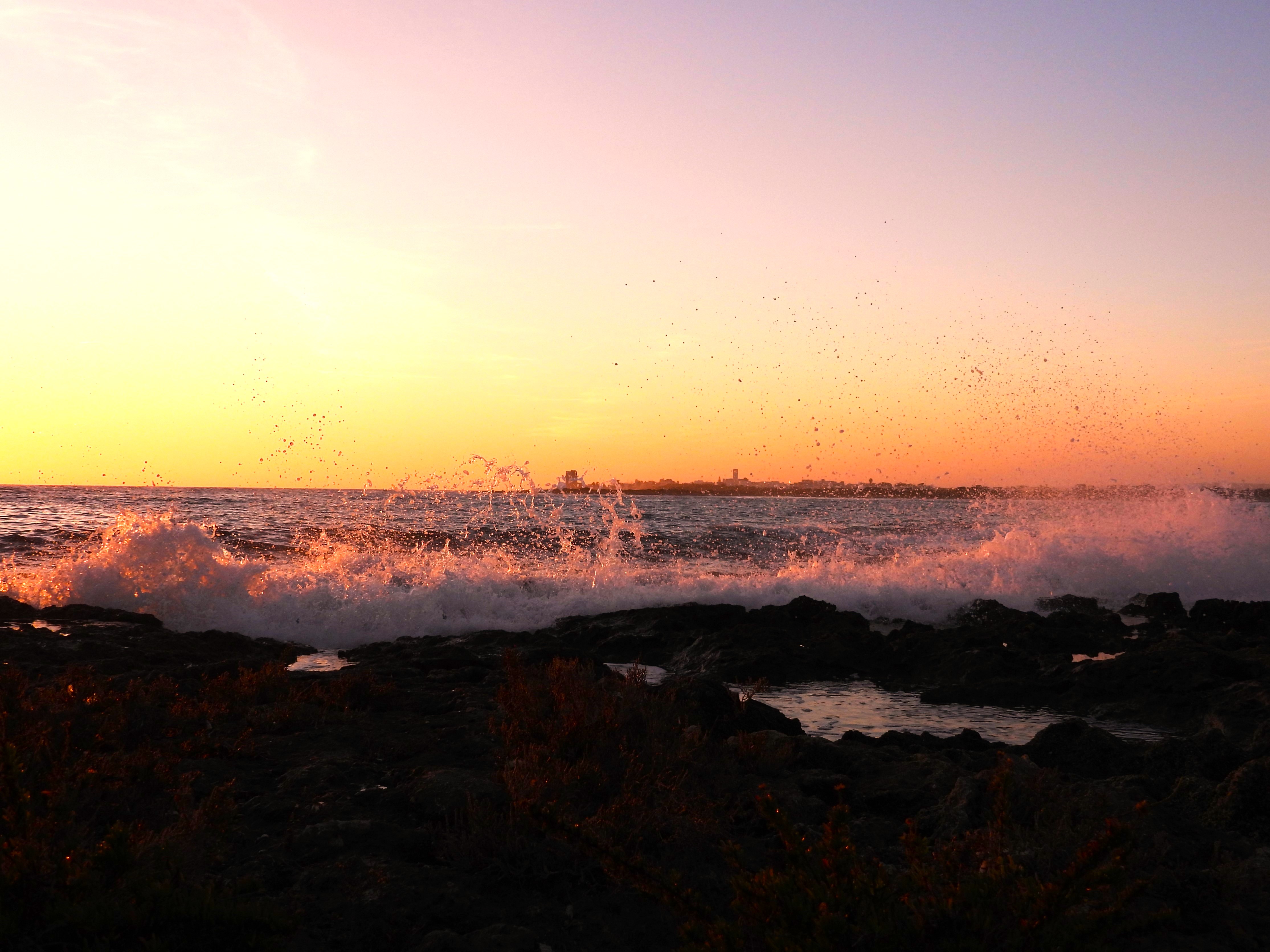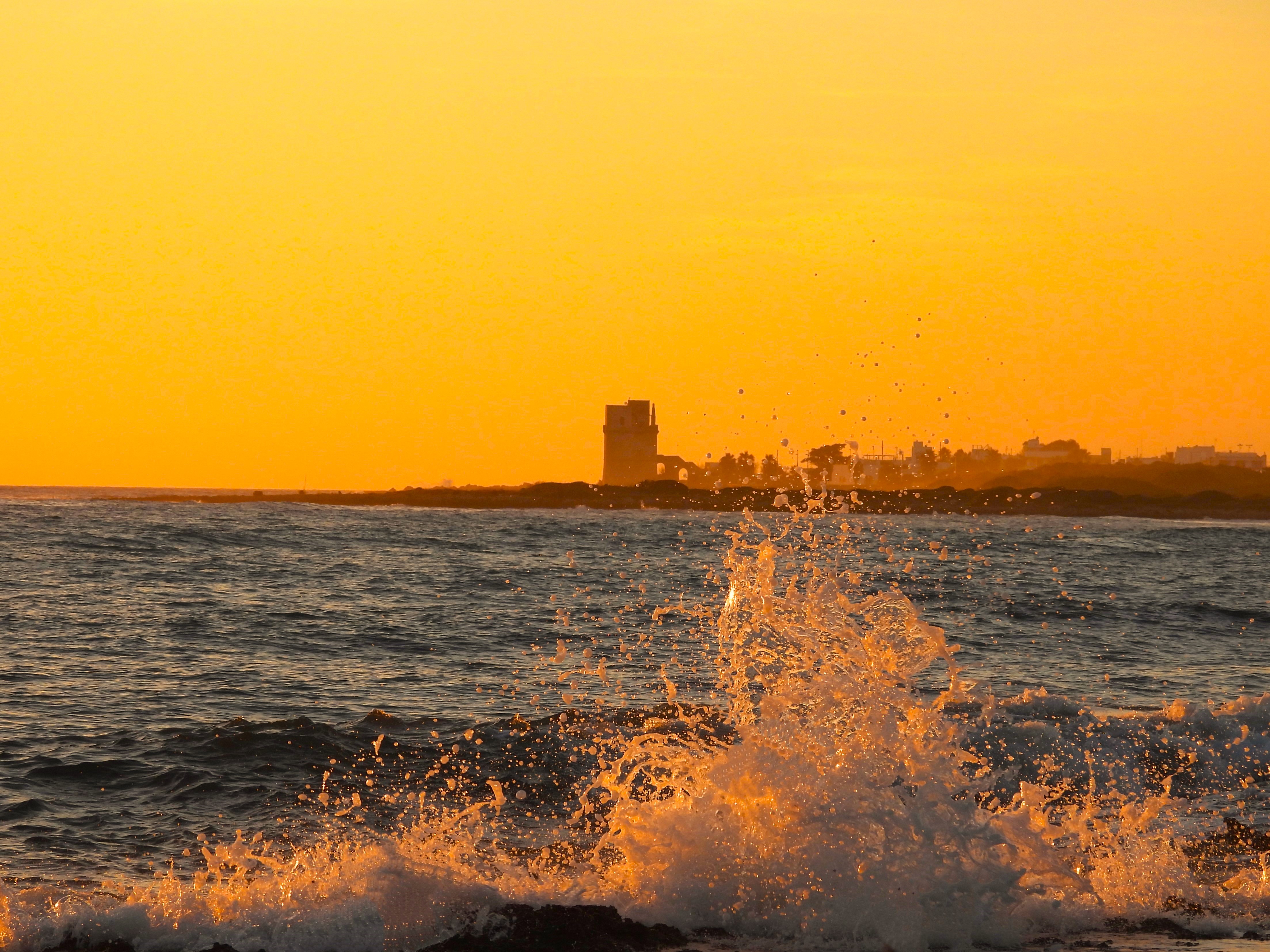 Il mare increspato e i tanti colori del tramonto che si riflettono nelle acque del mare di Torre Colimena