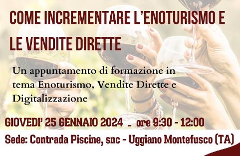 Il Consorzio Tutela di Tutela del Primitivo di Manduria, in collaborazione con Divinea Wine Suite, ha organizzato un corso formativo “su enoturismo e sulle vendite dirette in cantina”, riservato ai soci del Consorzio e ai loro collaboratori.