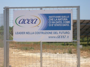 Già a luglio, sarà pronta una nuova centrale da 999 kwp, come quella attuale, della società MALBY Energy srl.L’ing. Alfonso Messina, amministratore delegato di ACEA reti e servizi energetici, guarda al “sud come grande risorsa per lo sviluppo dell’energia pulita”. “La ACEA è una azienda che da 100 anni sceglie la sostenibilità, l’uso di risorse ambientali da trasformare in energia mettendo parte le fonti fossili”. “Abbiamo impianti in tutte le province pugliesi, tranne a Brindisi”.
