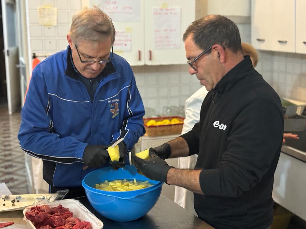 I volontari hanno preparato uno speciale piatto “tricolore”, con peperoni, patate e pomodori.
