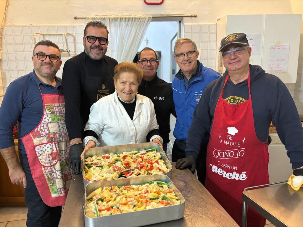 Accolti da don Franco Dinoi e la signora Antonietta, che si occupa ogni giorno volontariamente di preparare e servire con un pasto caldo gli indigenti (con altri volontari), i rappresentanti delle tre associazioni e l’on. Giovanni Maiorano hanno dapprima scaricato le derrate alimentari e, quindi, si sono alternati ai fornelli.