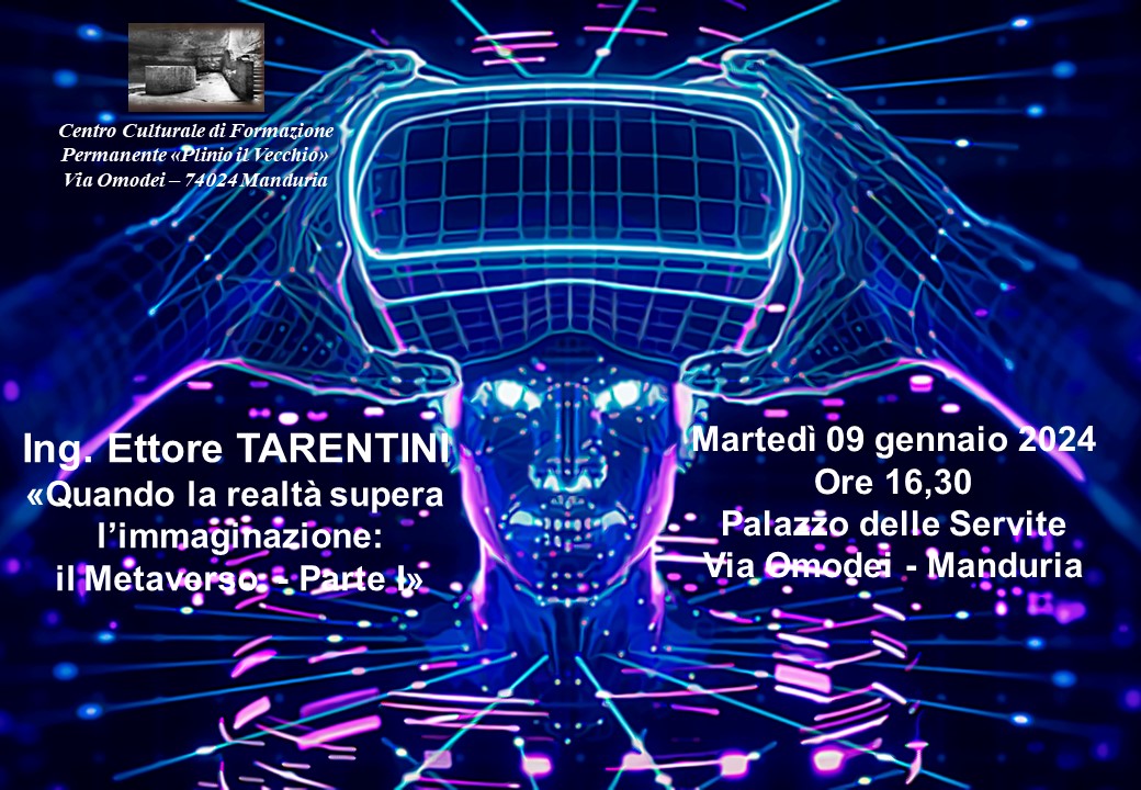 Dopo la pausa natalizia, domani, martedì 9 gennaio, riprenderanno gli incontri del Centro Culturale di formazione permanente “Plinio il Vecchio”, presso la sede, sita in via Omodei, Palazzo delle servite, piano terra, alle ore 16,30