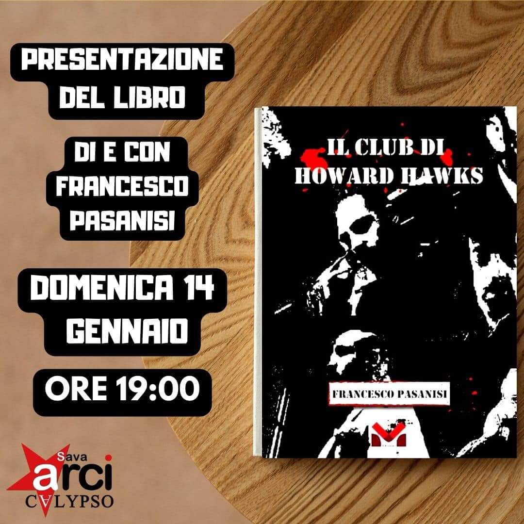 Domenica sera, alle 19, in via Macello 1, avrà luogo la presentazione del libro “Il club di Howard Hawks” di Francesco Pasanisi. All’iniziativa, promossa da Arci Calypso, interverrà l’autore.