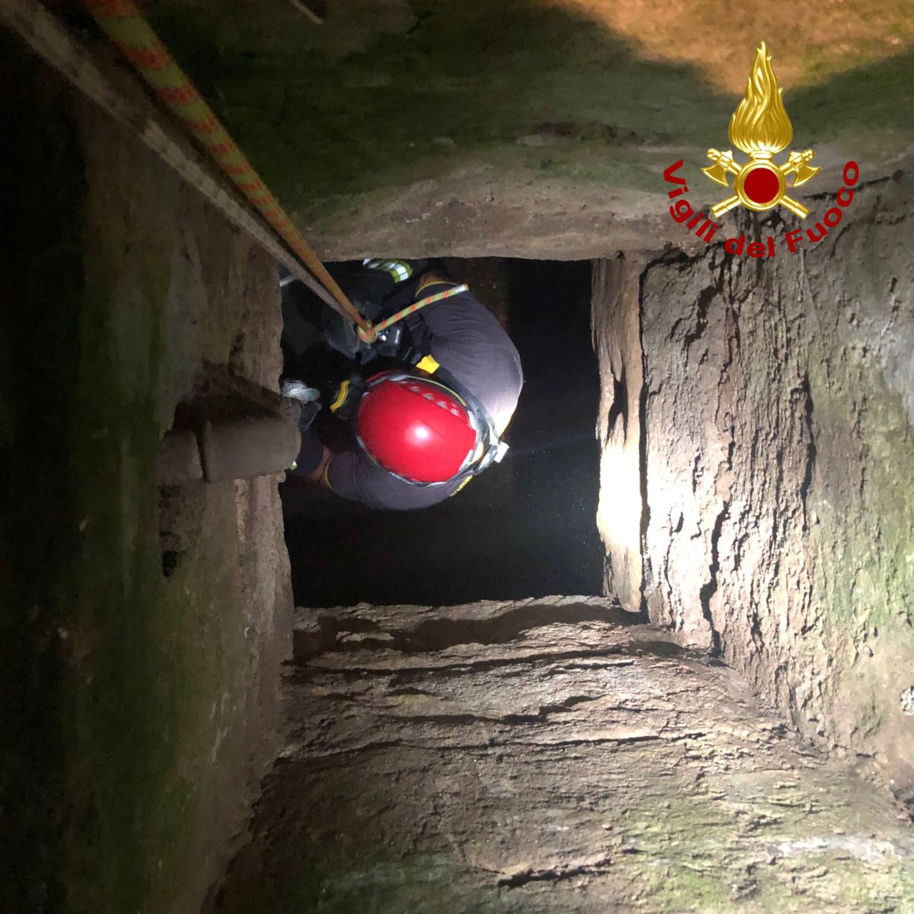 I vigili del fuoco si sono calati nel pozzo, profondo una decina di metri