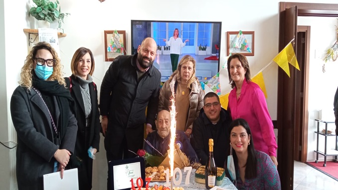 Il sindaco De Carlo: «Sette anni fa festeggiavamo insieme i 100 anni. Oggi 107 anni e (davvero!) non sentirli!»