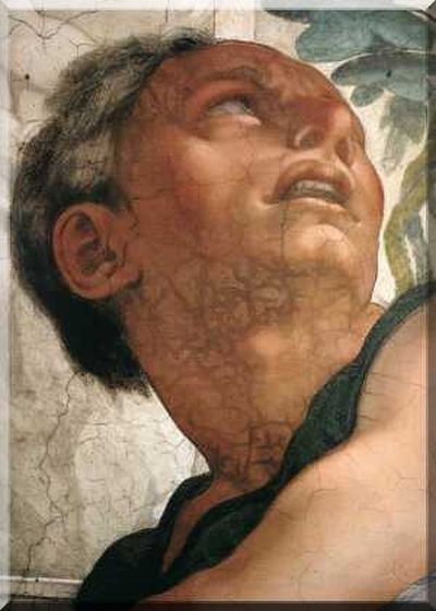 connotano un’umanità ‘primordiale’ e ‘peccatrice’. A questi soggetti si aggiungono alcune figure nella Cappella Sistina (1508-1512), come il profeta Giona o la Sibilla Delfica, i quali, pur non essendo peccatori, rappresentano quell’umanità che non ha conosciuto Cristo (“ante Gratiam”). Il quinto incisivo lo si ritrova anche nell’episodio del ‘Diluvio Universale’ e su alcuni angeli nella scena della ‘Creazione del sole e della luna’. Anche analizzando il ‘Giudizio Universale’ (1536-1541), l’Autore individua il quinto incisivo in molte raffigurazioni di diavoli e di anime dannate, confermandolo così nella sua accezione negativa.