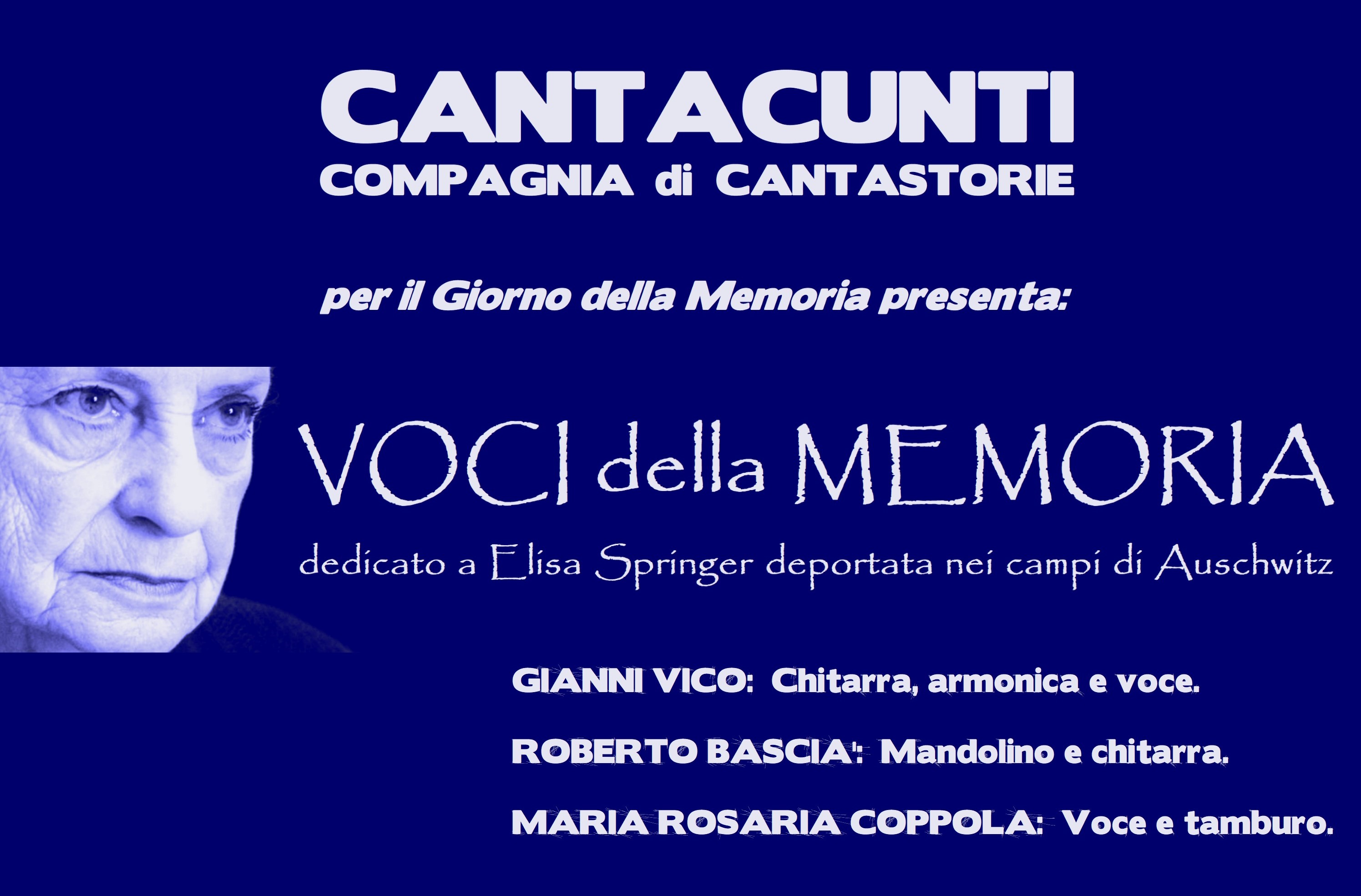 Lo farà venerdì 26 gennaio alle ore 19 presso la chiesa SS. Trinità di Roccaforzata proponendo una rappresentazione di musica e voce della compagnia di cantastorie Cantacunti che proporranno “Voci della Memoria”. Uno spettacolo dedicato ad Elisa Springer, la cittadina di origini austriache sopravvissuta nel campo di sterminio di Auschwitz stabilitasi nel dopoguerra a Manduria e, sino alla sua morte (2004), ha voluto testimoniare le atrocità vissute in quei luoghi di morte.