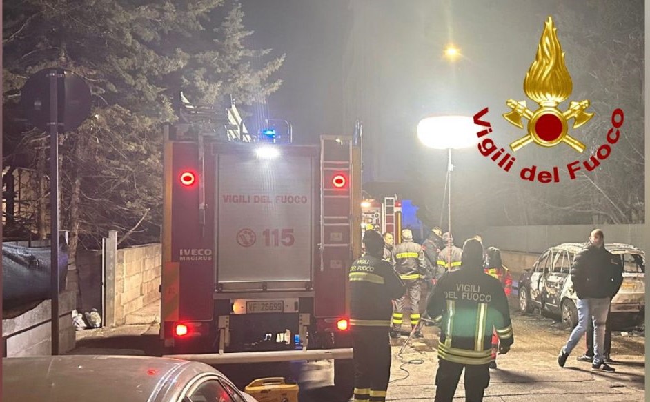 Trovato un corpo carbonizzato in un’auto in fiamme in via Cavalieri Ordine di Vittorio Veneto.