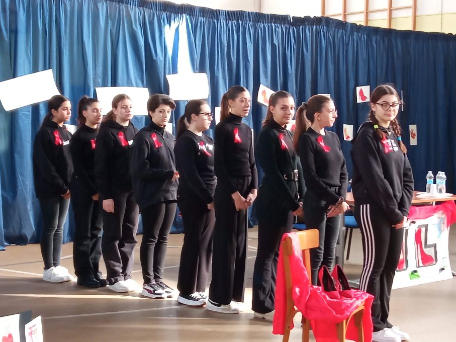 L’incontro, riservato alle prime classi della scuola secondaria di primo grado, ha consentito agli studenti della scuola manduriana di incontrare e confrontarsi con tre operatrici del centro antiviolenza “Rompiamo il Silenzio" gestito dall'Aps "Sud Est Donne”: l’operatrice di primo ascolto Sandra Patricia Zapata, l’assistente sociale Paola Cellamare e l’avvocata Teresa Tatullo. Con delle splendide scenografie realizzate dagli stessi studenti (guidati dalle docenti di Educazione Artistica Cristina Chimienti e Raffaella Delle Donne, nonché dalla docente di sostegno Grazia Luisa D’Oria) a far da cornice, nove ragazze delle classi terze (Maria Chiara Tripaldi, Sirya Dinoi, HelisUrsoleo, Helena Memmola, Matilde Stranieri, Letizia Malorgio, Giorgia Prudenzano, Matilda Adriano e Sofia Pezzolla), hanno brillantemente interpretato un monologo sulla violenza di genere di Paola Cortellesi, accompagnate da alcuni brani musicali eseguiti da altri nove studenti delle medesime classi, guidati dalla docente di Educazione Musicale Mariquita Galasso (Melissa Melle, Rebecca Mascolo, Marco Banditelli, Mattia Mariggiò, Antonio Daggiano, Melissa Lilla Parco, Daphne Bianco, Sofia Raguseo e Sofia Baldari).