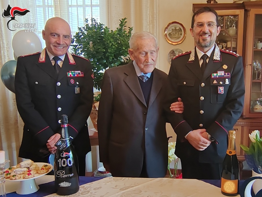 A porgergli gli auguri presso la sua abitazione di Giuggianello (LE), a nome di tutti i Carabinieri, è stato il Comandante Provinciale di Lecce, Colonnello Donato D’Amato, accompagnato dal Comandante della Stazione di Muro Leccese.