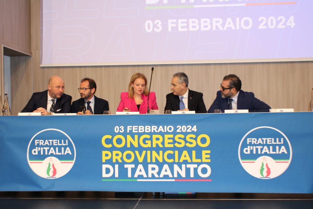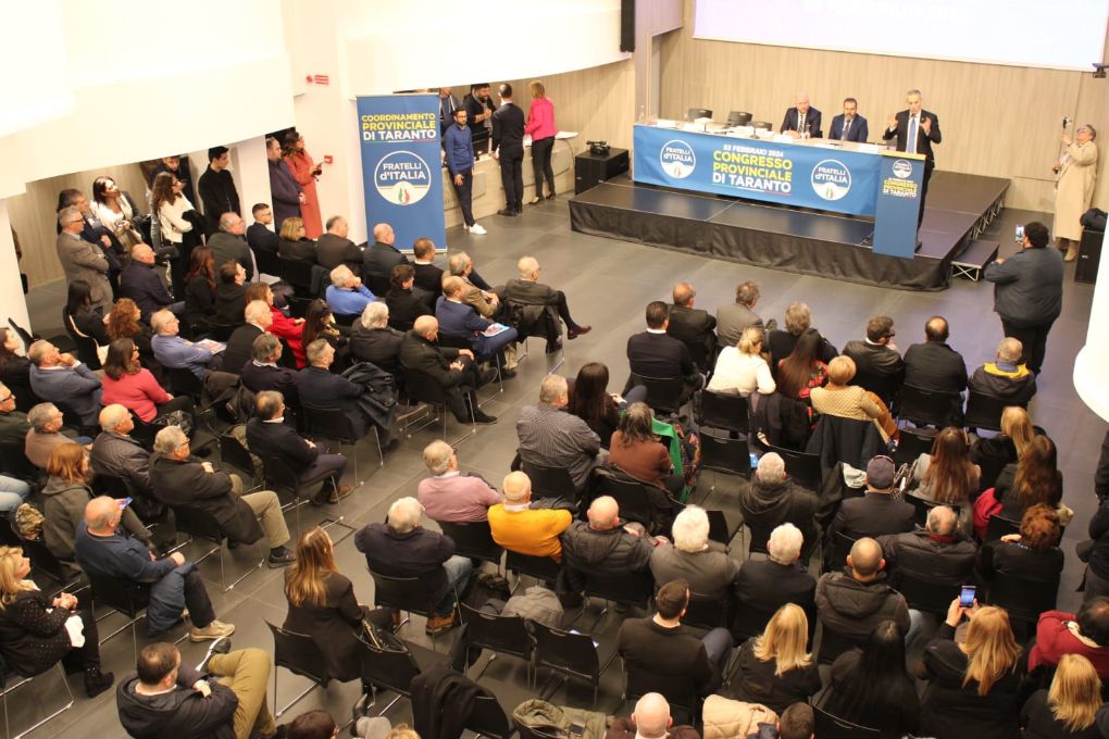Confermato alla guida del coordinamento provinciale di FdI, l’on. Dario Iaia che, a margine del congresso provinciale, ha rimarcato l’esigenza di continuare a fare squadra soprattutto in questa fase così cruciale per la città. Durante i lavori dell’assemblea è intervenuto, tra gli altri, il sottosegretario alla salute Marcello Gemmato che ha puntualizzato sul ruolo del partito a Taranto, essendo la provincia con il più elevato numero di tesserati in tutta la regione. Eletti in qualità di componenti del direttivo provinciale Francesco Fischetti, Giampaolo Vetri, Tiziana Toscano, Filippo Pavone, Grazia Lillo, Annarita Frascella, Ciro Francesco Miale, Roberto Puglia, Tommaso Chiarelli, Daniele Mele, Cosimo Ciura, Gianluca Mongelli, Luigi Montanaro, Francesco Marra, Vincenzo Di Fonzo, Maristella Carabotto, Domenico Miccolis, Agostino Perrone, Alessandro Scarciglia, Marta Sasso.