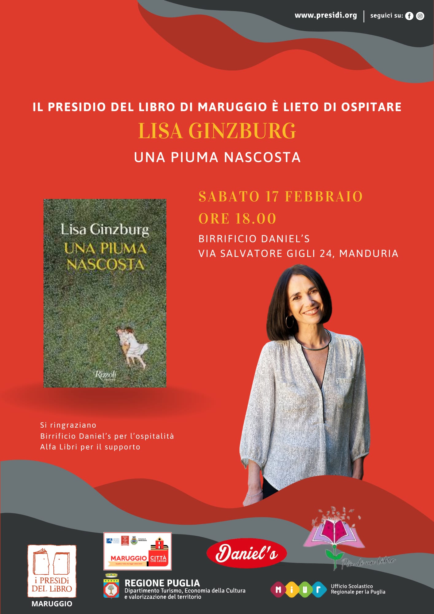 La scrittrice Lisa Ginzburg torna gradita ospite in Puglia, nelle province di Bari e Taranto, per raccontare il suo ultimo libro: Una piuma nascosta (Rizzoli, 2023).