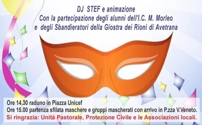 La sfilata partirà da piazza Unicef. Durante il percorso, prima dell’arrivo in piazza Vittorio Veneto, ci saranno dei flash mob dei bambini avetranesi