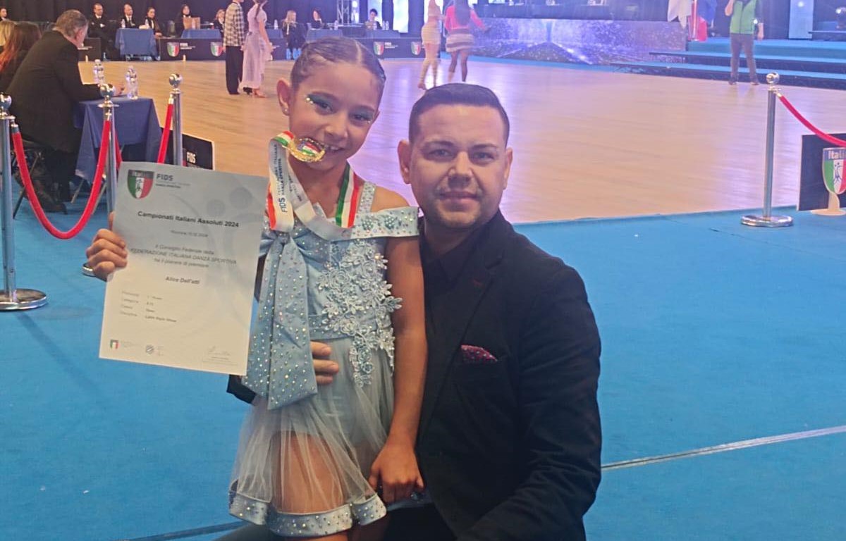 Alice Dell’Atti (foto in alto) ha conquistato il titolo italiano nella categoria 8-12 anni della specialità Latin Show nel corso dei campionati in corso di svolgimento a Riccione.