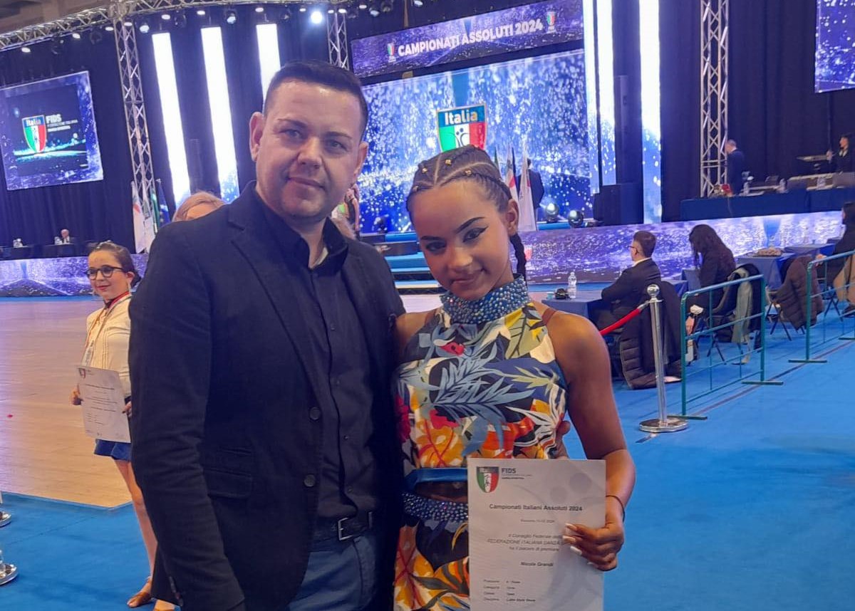 L’altra atleta del Team Dance Erario Academy, Nicole Grandi, si è classificata al sesto posto nella categoria 13-14 anni della specialità Latin Show