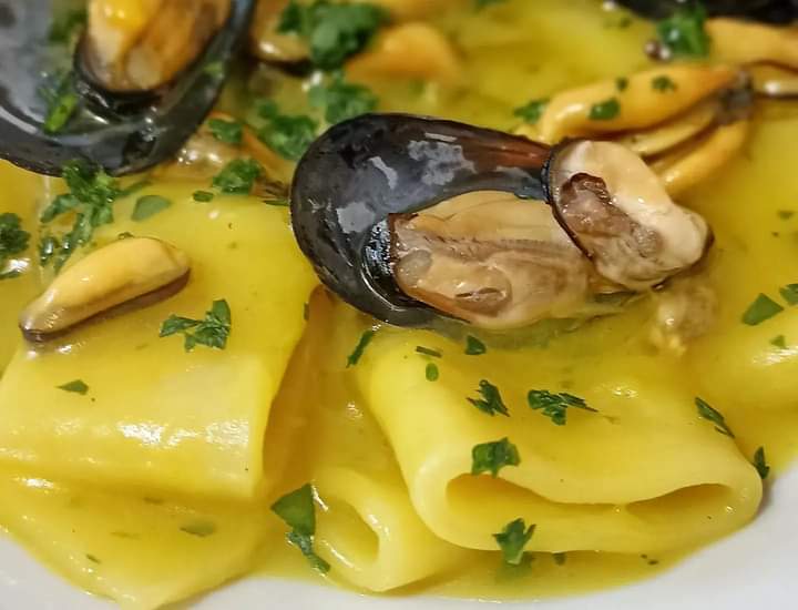 Paccheri con cozze e zafferano