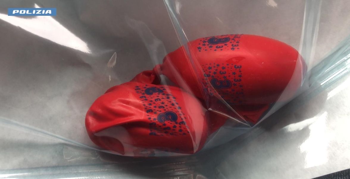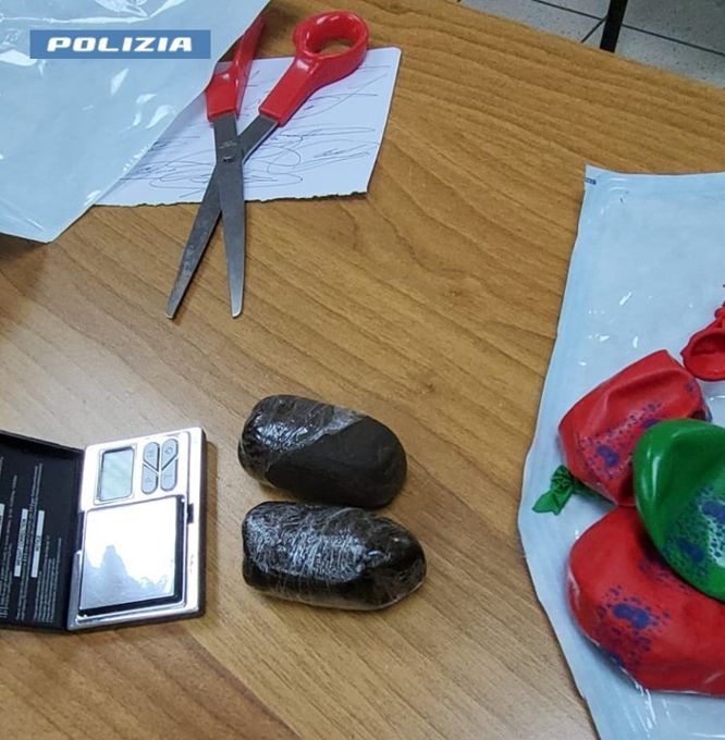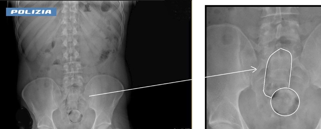 Dall’esame radiologico è emerso che nell’addome del sospettato vi erano due corpi estranei, risultati essere due palloncini contenenti rispettivamente 50 e 100 grammi di hashish.