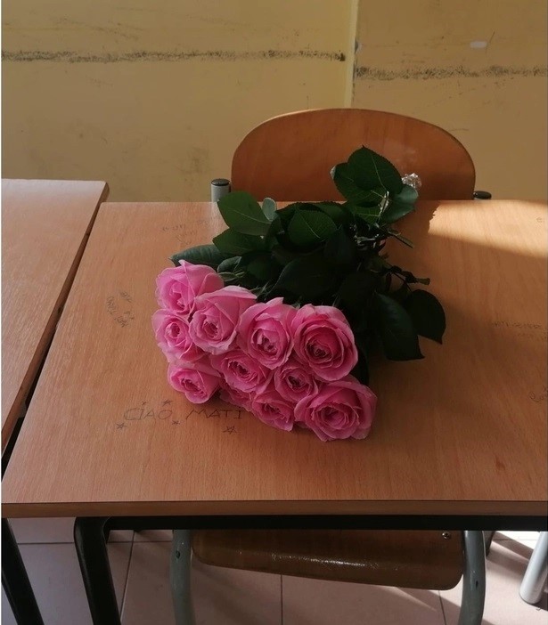 Sul banco della scuola che frequentava Matilde un mazzo di fiori