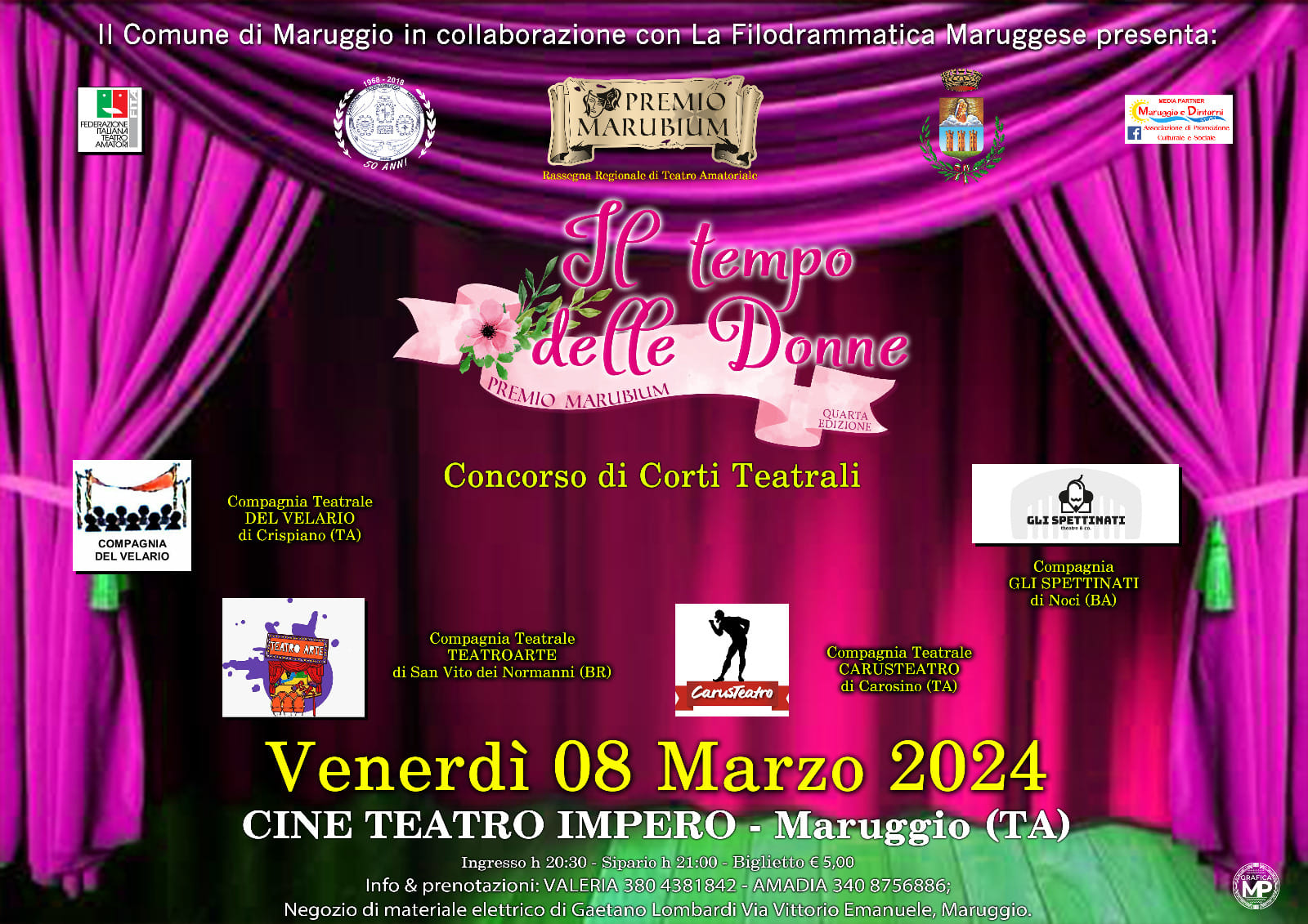 E’ il tema di un concorso di corti teatrali che la Filodrammatica Maruggese, sostenuta dal Comune di Maruggio, propone per venerdì 8 marzo (ingresso 20,30; sipario 21) presso il cine teatro Impero.