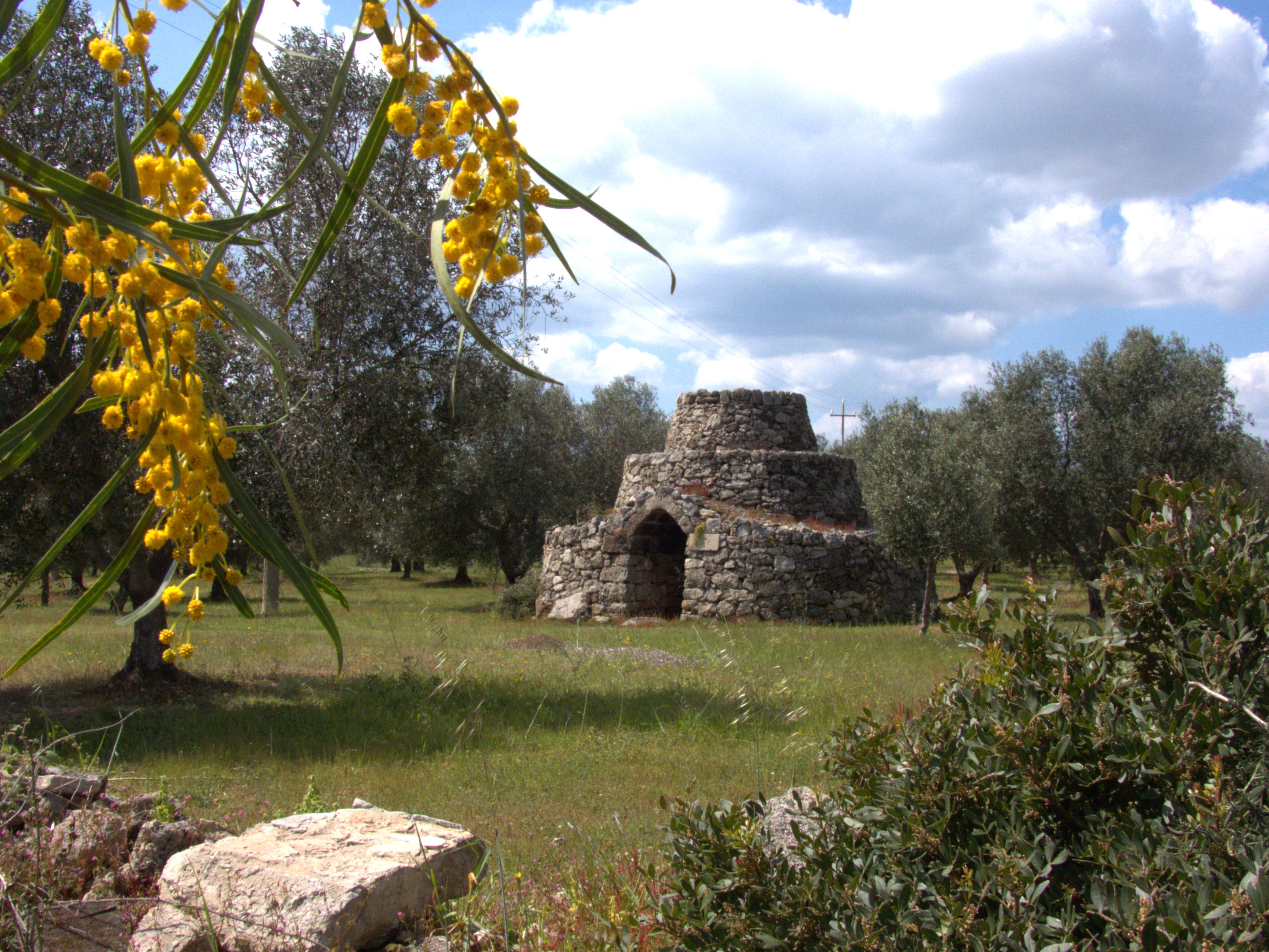 Nella Giornata dei diritti delle Donne, lo scatto in cui intravedono le mimose e, sullo sfondo, un bellissimo trullo.