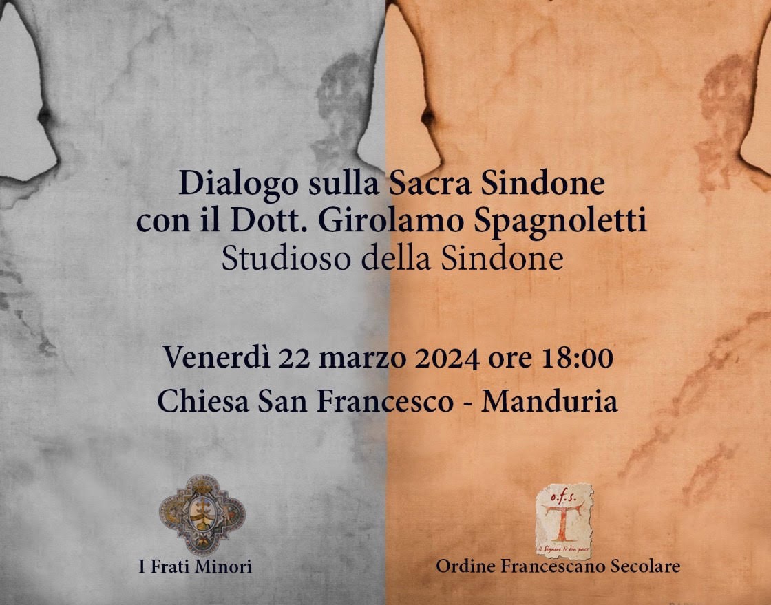 All’iniziativa, promossa dai Frati Minori e dall’Ordine Francescano Secolare, relazionerà Girolamo Spagnoletti, studioso della Sindone.