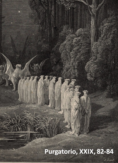 (…) In cima al Purgatorio, canto XXVIII, Dante s’immerge ne “la divina foresta spessa e viva” (Purgatorio, XXVIII, 2): il Paradiso Terrestre. “Divina” perché creata