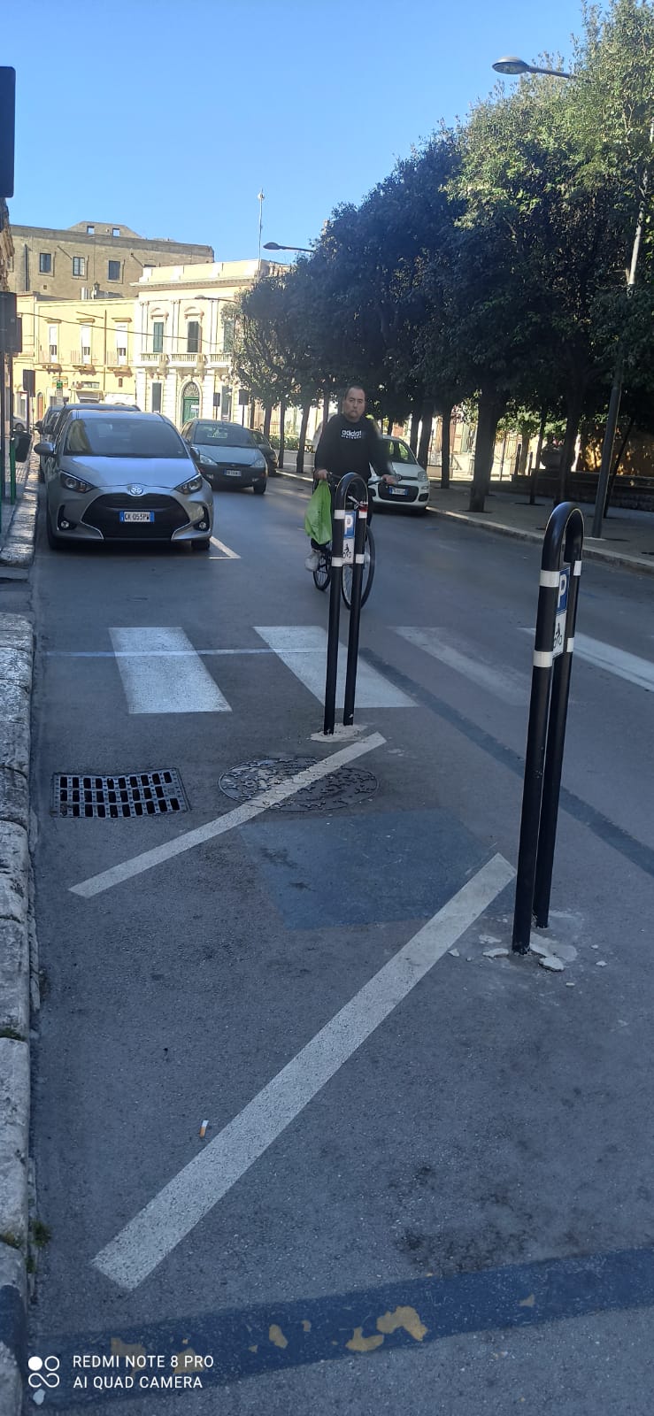 «Mi permetto di segnalare che il posizionamento di alcuni stralli metallici per l’individuazione del parcheggio di motocicli, evidentemente avvenuto da parte della ditta incaricata senza alcuna supervisione tecnica, al momento rappresenta serio pericolo per la circolazione nelle vie della città