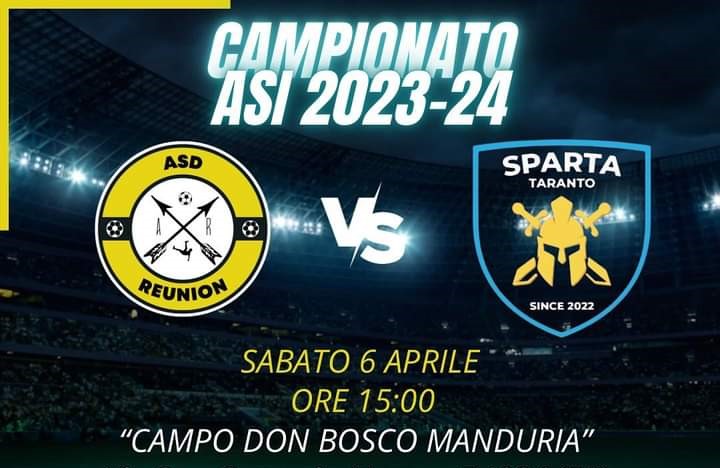 Quart’ultima giornata della serie B1 del torneo provinciale ASI. Nello sprint per la conquista dei due posti utili per il salto di categoria, il calendario riserva l’impegno più ostico alla vice capolista Reunion Manduria, che ospiterà oggi lo Sparta Taranto, squadra quarta in classifica. La Reunion Manduria, con 65 punti in classifica, frutto di 21 successi, 2 pareggi e 3 sconfitte, vanta il miglior attacco (86 gol all’attivo) e la terza miglior difesa (37 gol al passivo).