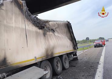 L'autista del mezzo, resosi conto del fumo e delle fiamme, ha accostato ed è riuscito a mettersi al sicuro. Sul posto sono poi arrivate diverse squadre dei vigili del fuoco e alcune pattuglie della Polizia Stradale.
