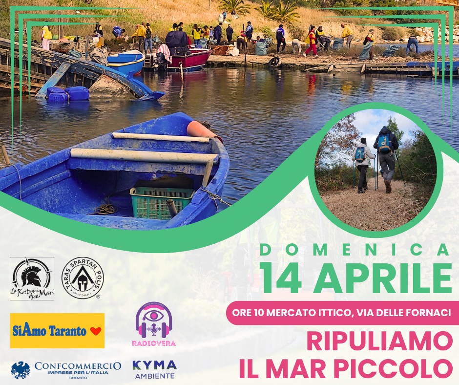 Elio Roma, fondatore della rotta, ha chiesto aiuto alle associazioni tarantine che sono già intervenute in operazioni di pulizia in quel tratto lo scorso 17 marzo. Si ritorna, quindi, il 14 aprile e La Rotta dei due Mari e Taras Spartan Polis saranno supportate da SiAmo Taranto, RadioVera, dal gruppo dei mitilicoltori di Confcommercio Taranto e da Kyma Ambiente, che darà supporto logistico immediato al fine dello smaltimento dei rifiuti raccolti,