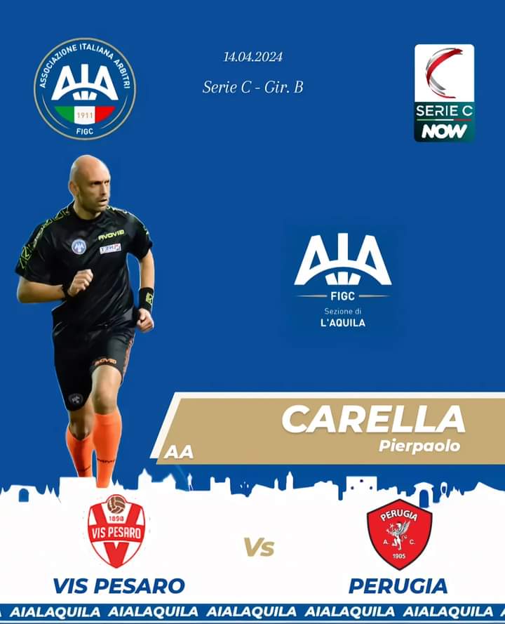 Pierpaolo Carella (AIA L’Aquila) designato come assistente dell’incontro fra Vis Pesaro e Perugia. Si tratta di un incontro del girone B della serie C. Si disputerà domenica sera (calcio d’inizio alle 20,45) presso lo stadio Benelli di Pesaro.