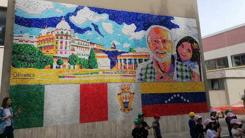 Oltre 100mila tappi di plastica diventano tessere di un mosaico, firmato dall'artista venezuelano Oscar Olivares, realizzato su una delle pareti esterne della palestra della scuola media Zingarelli. La parete raffigura il nonno dell'artista foggiano Vito Moreno (che ha fornito il bozzetto dell'opera) con una nipotina. Sullo sfondo, la fontana del Sele di piazza Cavour, una delle icone della città, in questi giorni celebrata per i 100 anni dall'inaugurazione.
