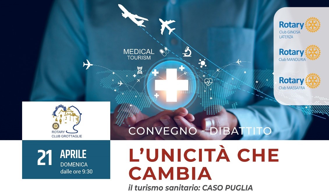 Domenica prossima (21 aprile), nelle sale del Circolo Ufficiali della Marina Militare di Taranto, dalle ore 9,30, avrà luogo un convegno-dibattito sul tema “L’Unicità che cambia: turismo sanitario. Il caso Puglia”.