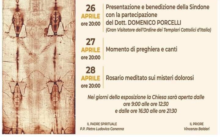 26 aprile, ore 20: presentazione e benedizione della Sindone con la partecipazione di Domenico Porcelli, Gran Visitatore dell’Ordine dei Templari Cattolici d’Italia