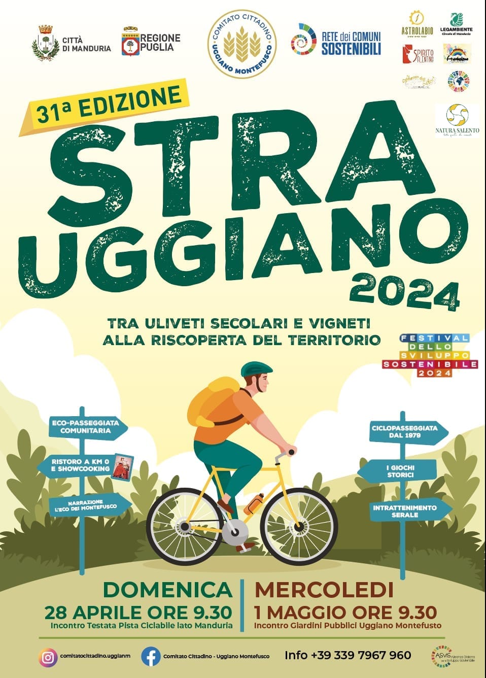 Domenica 28 aprile e mercoledì 1 maggio, il comitato cittadino Uggiano Montefusco organizza la Stra-Uggiano 2024, “Fra Ambiente e Comunità”, una due giorni di immersione tra Natura, Storia, Tradizioni del Borgo di Uggiano Montefusco e del Territorio.