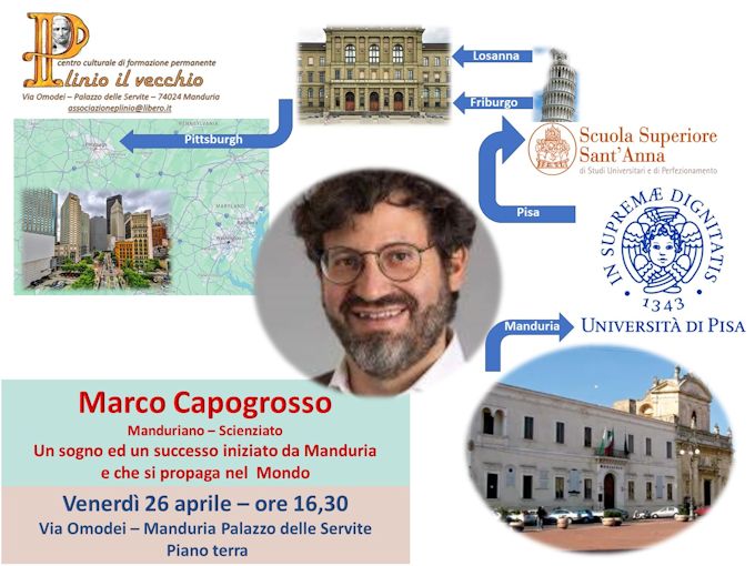 26 aprile ore 16.30: incontro/ conversazione con il nostro concittadino Marco Capogrosso, eminente studioso e ricercatore a livello mondiale