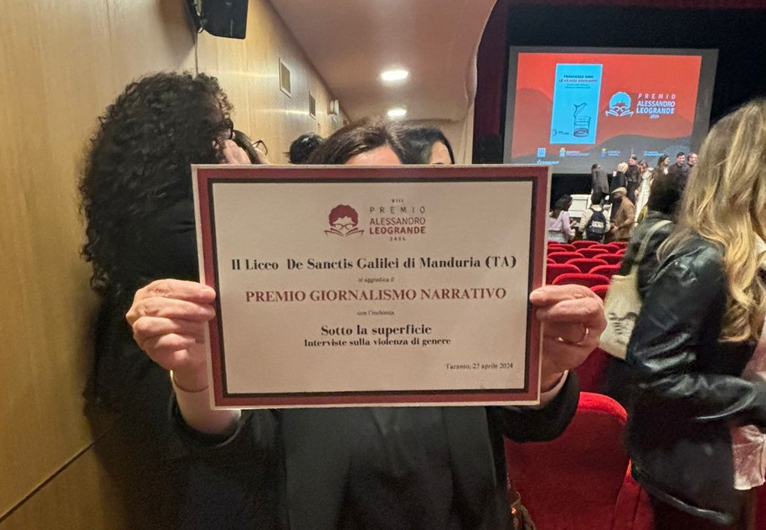 Le 19 scuole che hanno aderito al progetto "Raccontami il giornalismo" hanno prodotto un'inchiesta/reportage narrativo dopo aver seguito una masterclass di Annalisa Camilli ,che ha decretato come lavoro migliore appunto quello del liceo De Sanctis Galilei di Manduria con l'inchiesta "Sotto la superficie", interviste sulla violenza di genere.